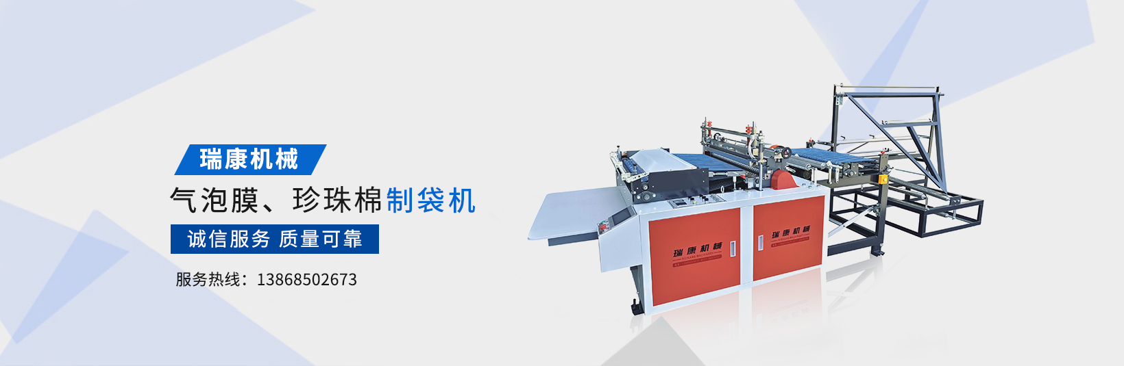 溫州瑞康機械有限公司(www.wzruikang_com.lsyyjd.com.cn)主要生產氣泡膜機,快遞袋制袋機,包裝機,制袋機等設備。瑞康機械是國內生產塑料軟包裝系列機械設備的專業廠家之一。產品質量可靠、誠信服務,深受用戶好評,市場占有率節節攀升。
